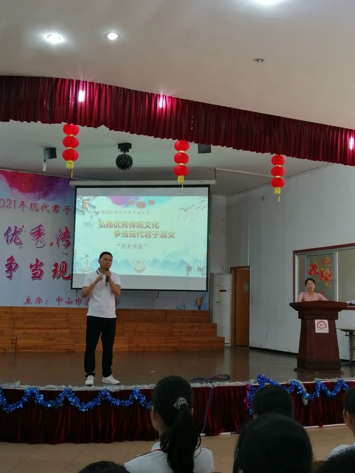 2021年3月29日,為慶祝中國共產(chǎn)黨成立100周年,重溫黨的光輝歷史,浪網(wǎng)中學(xué)結(jié)合校園特色活動(dòng)---“現(xiàn)代君子淑女節(jié)”,開展了一場“弘揚(yáng)優(yōu)秀傳統(tǒng)文化,爭當(dāng)現(xiàn)代君子淑女之‘黨史講座’”活動(dòng)。
