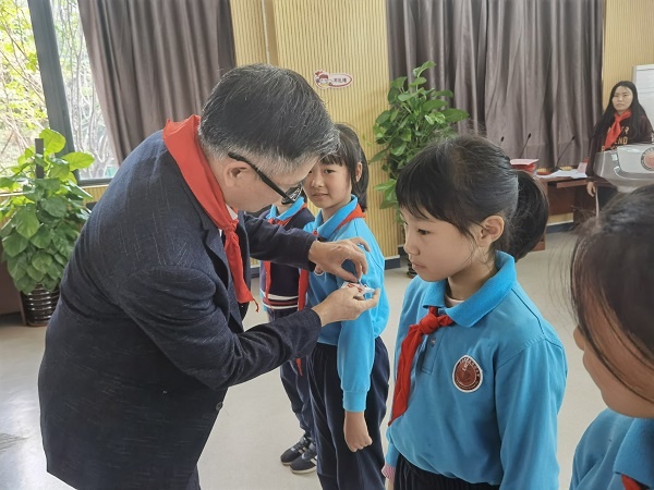 會議還選舉了大隊委員會第一屆委員、工作委員會第二屆委員,與會代表積極行使自己的選舉權,投上了神圣的一票,選舉順利結束,何廣志校長為各委員頒發(fā)聘書,為各大隊委員佩戴標志。
