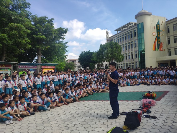 緊接著,南區(qū)消防中隊(duì)的消防員在教學(xué)樓前的小廣場(chǎng)上向師生介紹了一系列的消防裝備,如氧氣筒、消防防護(hù)服、液壓剪、擴(kuò)張器、絕緣剪、多功能水槍、滅火服、手動(dòng)破拆工具組等。消防員還親身示范這些裝備的使用方法,部分學(xué)生代表學(xué)習(xí)了消防裝備的使用方法,學(xué)生們?cè)隗w驗(yàn)中增長(zhǎng)了消防知識(shí)及技巧,強(qiáng)化了安全意識(shí)。