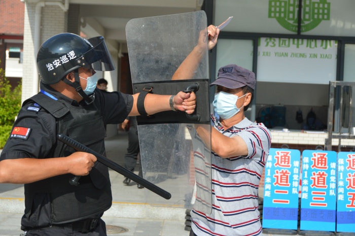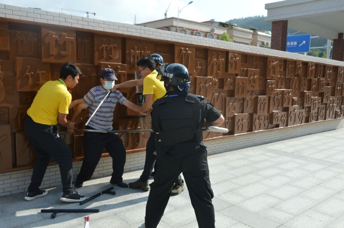 為確保學(xué)校廣大師生生命安全,維護(hù)正常的教學(xué)秩序,進(jìn)一步增強(qiáng)保安應(yīng)對(duì)與處置突發(fā)事件的能力,提高保安隊(duì)伍防暴反恐反應(yīng)能力和協(xié)調(diào)水平,2020年 9 月30日竹秀園中心小學(xué)開展反恐防暴安全演練。