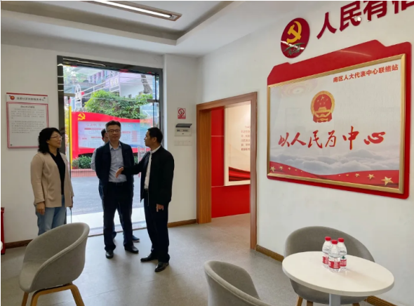 3月9日下午,廣東省人大常委會選聯(lián)工委副主任陳曉明率隊到南區(qū)街道調(diào)研人大代表聯(lián)絡(luò)站規(guī)范化建設(shè)工作。中山市人大常委會選聯(lián)工委主任李文軍、南區(qū)街道黨工委副書記鐘詠參加調(diào)研。