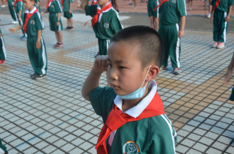 儀式最后,大隊輔導員胡淑娟老師帶著新隊員在隊旗下呼號:“準備著,為共產(chǎn)主義事業(yè)而奮斗!”,隊員們鏗鏘有力地回答:“時刻準備著!”。這響亮的回答見證了新隊員的堅定決心,也將見證他們以后點點滴滴的收獲與成長。