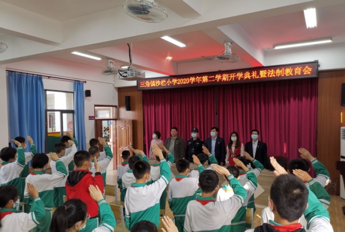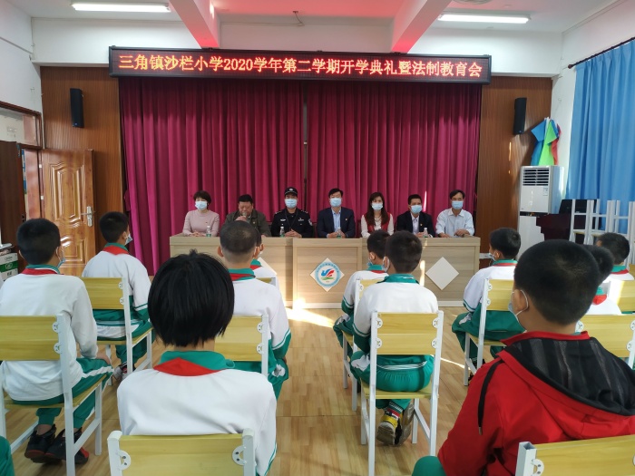 一年初始,萬象更新“,新的學(xué)期,新的希望。2月22日早晨,沙欄小學(xué)781名師生帶著對寒假的美好回憶,迎著春天溫暖的陽光,邁著輕盈的步伐,回到沙欄小學(xué)這個溫暖幸福的大家庭。上午8:30,沙欄小學(xué)隆重舉行2020學(xué)年第二學(xué)期開學(xué)典禮暨法制安全教育會議。三角鎮(zhèn)教育事務(wù)中心段子元主任、沙欄派出所駐校法制副校長吳振輝參加了本次會議。開學(xué)典禮在隆重的升旗儀式中拉開序幕。首先,德育處霍主任對學(xué)生在交通安全、校園活動、行為習(xí)慣等方面提出了明確要求,期望學(xué)生在新學(xué)期能平安、快樂地度過。