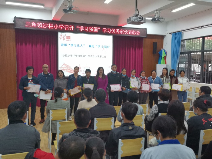 本學期,為了響應(yīng)黨中央的號召,沙欄小學“學習強國”學習活動開展如火如荼,不僅全體教師天天學習,全體家長也加入了這個“學習強國”學習的行列。為了鞏固前階段的學習成果,也為了進一步推廣“學習強國”學習活動,擴大其在全社會的影響,12月10日下午,沙欄小學繼續(xù)召開“學習強國”學習先進家長表彰大會,值此機會,表彰了從9月1日到12月9日在學習強國活動中表現(xiàn)突出的五年級家長,五年級全體教師和家長參加了此次大會。