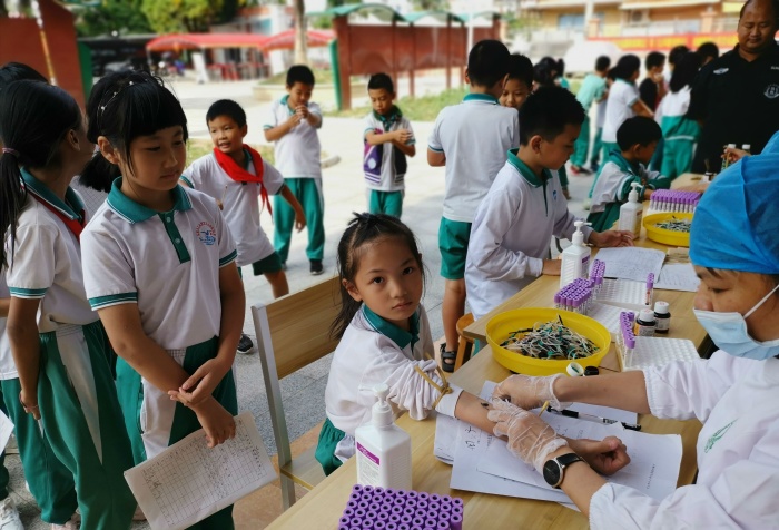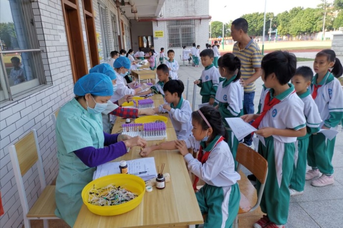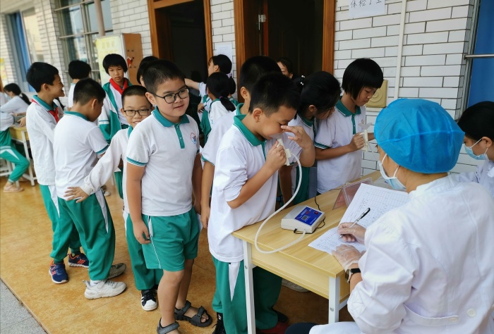 關(guān)注健康,關(guān)愛學(xué)生成了三角鎮(zhèn)沙欄小學(xué)的常態(tài)工作,學(xué)校每年都會(huì)組織學(xué)生健康體檢,建立健全學(xué)生體質(zhì)健康檔案,確保廣大學(xué)生以更加強(qiáng)健的體魄投入到學(xué)習(xí)和生活中去。10月21、22日,三角醫(yī)院體檢科醫(yī)務(wù)人員對沙欄小學(xué)700多名學(xué)生進(jìn)行了健康體檢。