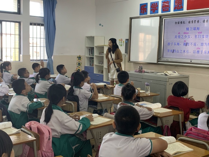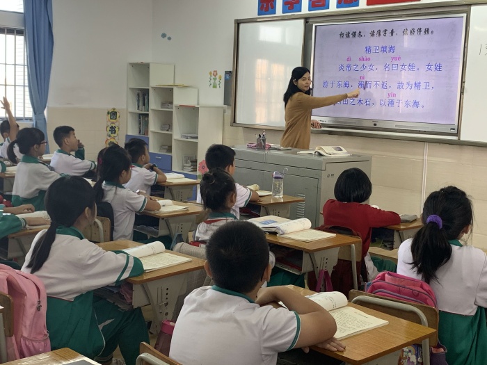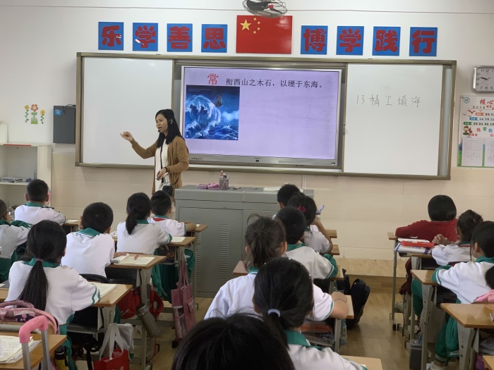 本次骨干教師示范課活動是余燕老師執(zhí)教,內(nèi)容是四年級語文上冊《精衛(wèi)填?!?。在本節(jié)課中,余老師教學(xué)流程環(huán)環(huán)相扣、教學(xué)技巧嫻熟自然、課堂氣氛和諧融洽,充分展現(xiàn)出語文課堂的精彩,使聽課教師們從中得到了很好的啟示,紛紛表示受益匪淺。在教學(xué)片段中,余老師引導(dǎo)學(xué)生充分利用注釋及生活經(jīng)驗,引導(dǎo)學(xué)生通過聯(lián)系上下文理解文言文,并引導(dǎo)學(xué)生在感悟神話故事的神奇性過程中,通過對課文內(nèi)容的解讀,從而發(fā)現(xiàn)神話故事的特點——神奇。
