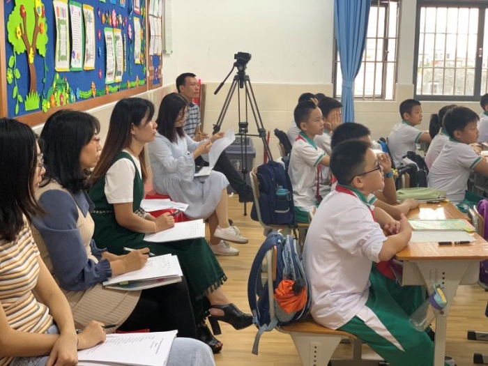 課后,沙欄小學(xué)英語科組的老師齊聚一堂,對教研課進(jìn)行評課。陳老師針對本節(jié)課做總結(jié)與反思,老師們各抒己見,紛紛交流分享,不斷提高教研和課題研究水平,以教研促教學(xué)。