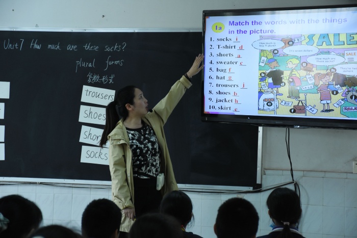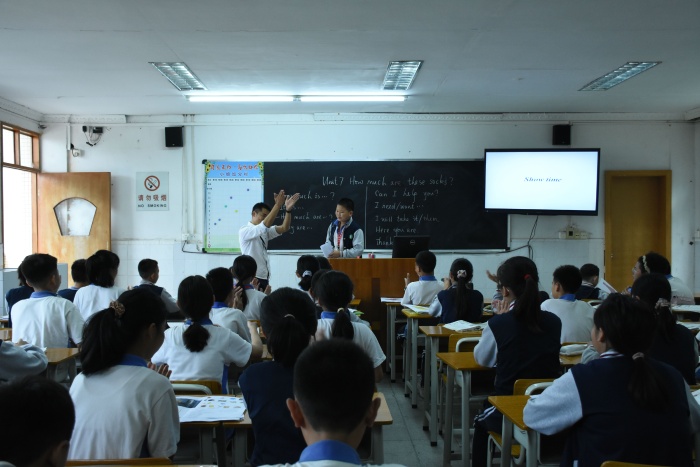 活動分成兩大部分,首先由三角中學(xué)的廖玉婷老師、沙欄初級中學(xué)的林騰新老師分別上了一節(jié)Book7上Unit7 How much are these socks? 第一課時的聽說課。課堂上,兩位老師呈現(xiàn)了各自的年輕優(yōu)勢,課堂活力四射,互補共進。課堂上廖老師準(zhǔn)備充分,強調(diào)真實語境的創(chuàng)設(shè),通過Guessing game,帶出詞匯學(xué)習(xí)。聽力部分,注重微技能訓(xùn)練,課件制作精美。如果在訓(xùn)練學(xué)生的功能語言上,強調(diào)一下學(xué)生的交際語:Can I help you? Thank you 等目標(biāo)語,效果會更佳。林老師注重從非智力因素培養(yǎng)學(xué)生,注重獎勵機制的實施,讓學(xué)生積極參與課堂。還有輸出環(huán)節(jié),注重與時俱進,讓學(xué)生付款用二維碼方式。兩節(jié)課各有千秋,精彩紛呈。