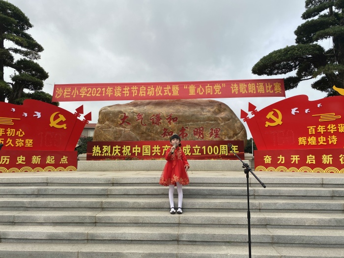 ——沙欄小學(xué)舉行2021年讀書(shū)節(jié)啟動(dòng)儀式暨“童心向黨”詩(shī)歌朗誦比賽發(fā)布時(shí)間:2021-03-30 08:03 信息來(lái)源:本網(wǎng)站 瀏覽次數(shù):0