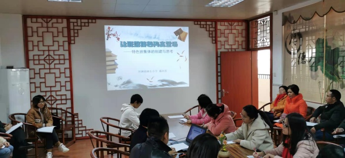 之后,新圩小學的朱華春副校長結(jié)合當前背景下班級特色建設(shè)問題進行了深入剖析,就“如何創(chuàng)建有特色的班集體”,解讀了班級特色創(chuàng)建的理念、思想、途徑和方式。從班級管理到班級建設(shè)的觀念轉(zhuǎn)變呼吁全體班主任要提升專業(yè)性發(fā)展能力,主動建設(shè)班級,以班級文化引領(lǐng)班級發(fā)展,最后還為班主任進行特色班級建設(shè)提供了各種思路,比如:經(jīng)典引路、童話引路、寓言引路、讓美文為青春導(dǎo)航目和吟誦美文等。