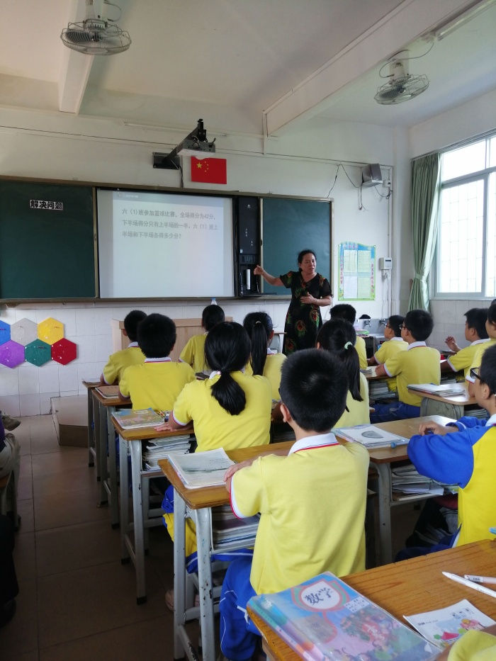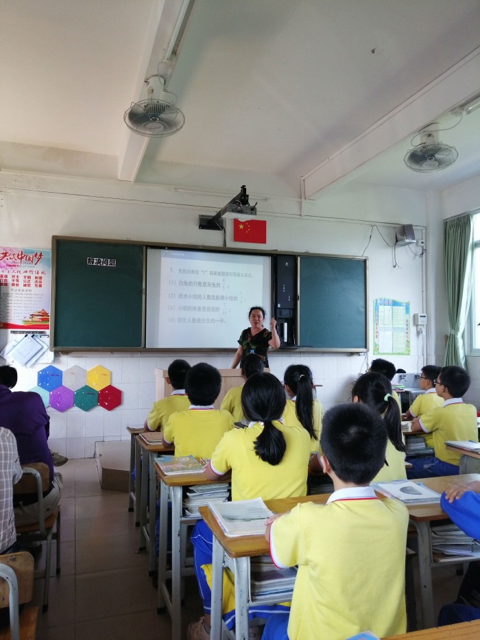 接著由吳桂珍老師給東華學校六(6)班的同學帶來了一節(jié)《解決問題》,吳老師首先帶著同學們復習了解決問題的一般過程,突出分數(shù)解決問題的關(guān)鍵——把握單位“1”。再引導學生根據(jù)題目條件畫線段圖,列關(guān)系式,再列方程解答。并在學生思考交流的基礎(chǔ)上,從不同角度用多種方法解決問題,發(fā)展了學生的幾何直觀和創(chuàng)新意識。吳老師豐富的教學經(jīng)驗給聽課老師留下了深刻的印象。