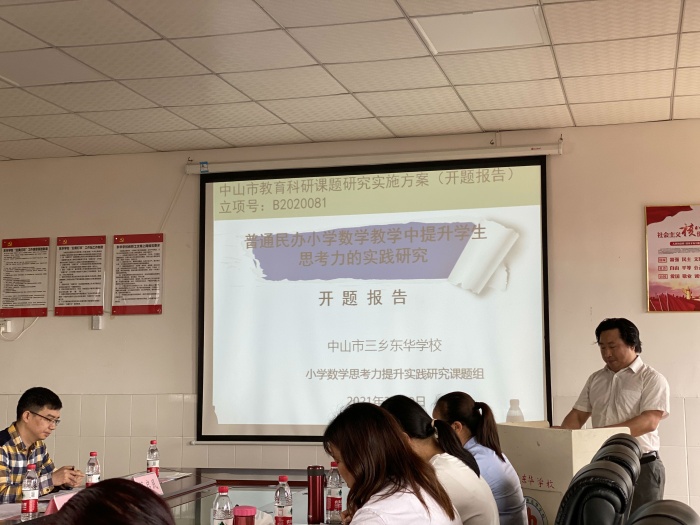 首先,由東華學(xué)校課題組負(fù)責(zé)人何傳偉老師就《普通民辦小學(xué)數(shù)學(xué)教學(xué)中提升學(xué)生思考力的實(shí)踐研究》做了開題報(bào)告。