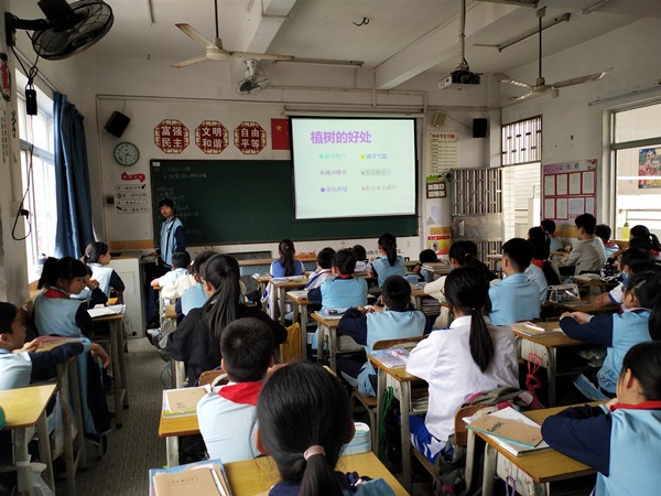 本次主題班會(huì)由各班班主任老師組織開展。首先,各班班主任老師以“班會(huì)故事”——《消失了的城市》引入,讓同學(xué)們了解沒(méi)有森林的保護(hù),城市將不再是城市。接著,與同學(xué)們一同分享植樹節(jié)的由來(lái)與孫中山先生之間的故事,進(jìn)一步認(rèn)識(shí)植樹節(jié)節(jié)徽。在學(xué)習(xí)中,同學(xué)們認(rèn)識(shí)了樹形、“中國(guó)植樹節(jié)”、“3.12”以及五棵樹的含義,懂得了植樹節(jié)倡導(dǎo)全民人人動(dòng)手,造福人類,年年植樹,綠化祖國(guó)大地,實(shí)現(xiàn)以森林為主體的自然生態(tài)體系的良性循環(huán)。隨后,通過(guò)數(shù)據(jù)、事例的講述,讓同學(xué)們進(jìn)一步理解植樹造林的意義,明白森林的巨大用處。最后,各班舉行“班會(huì)宣言”,老師們向?qū)W生發(fā)出倡議,當(dāng)好小小護(hù)林員,精心呵護(hù)種下的小樹苗,經(jīng)常澆水、除草、滅蟲,保證小樹苗健康茁壯成長(zhǎng);當(dāng)好生態(tài)小志愿者:珍惜保護(hù)身邊的一草一木,合理使用各種木制品;節(jié)約使用紙張,雙面打印稿件,正反面使用草稿紙,盡量不使用木質(zhì)鉛筆;循環(huán)使用生活用水,不往河流、湖泊中傾倒生活廢水?! ?/p>