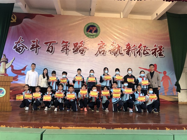 最后,由高主任宣讀上學期在省、市、鎮(zhèn)各項學科比賽獲獎的老師、學生,樂群村黨總支部副書記繆溢汞為獲獎老師頒獎。樂群村黨總支委員、村委會副主任梁錦榮,黨總支委員兼村委委員楊亮途和黨總支委員梁夢曉、樂群小學李荊校長和梁君豪主任分別為獲獎學生頒獎。獲獎同學排著整齊的隊伍,上臺拍照留念,手捧獎狀,個個笑逐顏開。同時,高主任鼓勵同學們,在新的學期不斷拼搏,不斷努力,爭取優(yōu)異的成績。