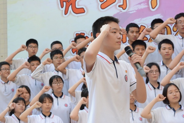 接著趙校長(zhǎng)為各班頒授“中考必勝”紅旗,各班同學(xué)按順序上臺(tái)進(jìn)行莊嚴(yán)的宣誓。同學(xué)們眼神堅(jiān)定,精神振奮,決心用百日的努力鑄造人生的輝煌。