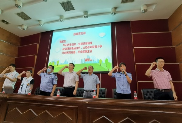 緊接著,全體師生莊嚴宣誓,堅決拒絕毒品,堅決與毒品作斗爭。隨后,坦洲鎮(zhèn)禁毒辦工作人員向全體師生介紹了毒品的品種、危害、吸毒原因,就青少年如何拒絕毒品作了重點講解。