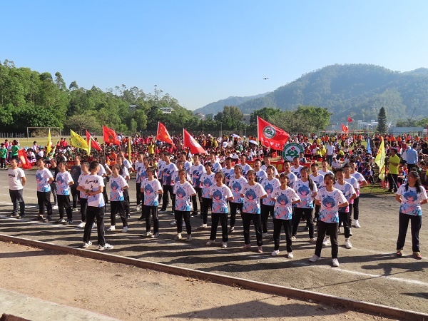 石芳文局長在講話中希望全體運動員們向?qū)W校柔道、足球隊的隊員學習,在比賽中發(fā)揚奧林匹克和五桂山老區(qū)精神,頑強拼搏,賽出水平,賽出風格,賽出五桂山學子的精氣神,并預祝五桂山學校第18屆運動會圓滿成功。五桂山學校黨支部書記,陳玉玲副校長對本次運動會提出要求和希望,期待五桂山學校的運動健兒們做快樂的追風少年,做最好的自己。最后,陳玉玲校長宣布:“五桂山學校第十八屆體育節(jié)開幕!”