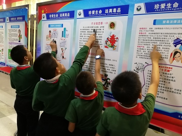 學(xué)校充分利用已經(jīng)建成的學(xué)校禁毒教育基礎(chǔ),利用主題班會(huì)課等時(shí)間帶領(lǐng)學(xué)生參觀。通過參觀禁毒教育基地,學(xué)生提高了對毒品的了解和認(rèn)識,明白毒品的危害性和破壞性。禁毒教育基地展示的許多鮮活的事例告誡同學(xué)們,不要因好奇而吸第一口毒品,否則將給個(gè)人和家庭帶來無窮無盡的悲痛。