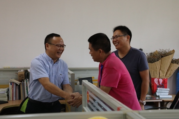 方英恩來到中學部辦公室,給老師們送上黨工委、辦事處的節(jié)日問候。他親切地與在場的老師們握手問好,了解老師們的生活工作情況。方英恩在慰問時表示:“黨工委、辦事處一定會以最高標準落實教師的福利待遇,讓老師們安心工作,希望老教師能夠發(fā)揮‘傳、幫、帶’的作用,發(fā)揮自己經(jīng)驗的優(yōu)勢,帶好新教師,讓新教師能夠快速的成長起來”。同時,他也希望青年教師能夠沉下心來,虛心學習,盡快成長為獨擋一面的骨干教師。
