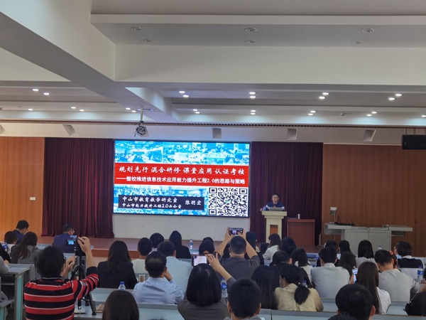 本次會(huì)議主要由中山市教育教學(xué)教研室,中山市信息技術(shù)教研員,中山市能力提升工程2.0辦公室陳明宏主任做了名為《規(guī)劃先行 混合研修 課堂應(yīng)用 認(rèn)證考核》整校推進(jìn)信息技術(shù)應(yīng)用能力提升工程2.0的思路與策略的主題培訓(xùn),陳主任主要從提升工程2.0的任務(wù)要求,校本研修與考核的實(shí)施策略,一劃兩案的制定思路等3個(gè)方面給與會(huì)人員進(jìn)行了長(zhǎng)達(dá)兩個(gè)半小時(shí)的培訓(xùn)。