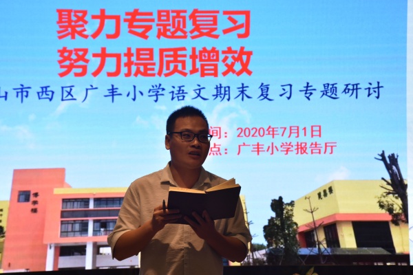 濃濃夏日,專研不斷。7月1日上午,西區(qū)廣豐小學(xué)在報(bào)告廳如期舉行了以“聚力專題復(fù)習(xí),努力提質(zhì)增效”為主題的語(yǔ)文復(fù)習(xí)教研活動(dòng)?;顒?dòng)由麥琦旗老師主持,中山市語(yǔ)文教研員梁雪菊老師和全體語(yǔ)文老師參加了本次活動(dòng)。