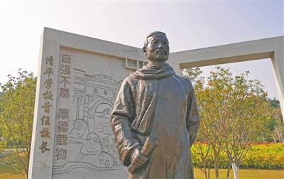 在唐國(guó)安紀(jì)念館內(nèi),漢白玉唐國(guó)安半身雕像背靠一幅石刻清華園大門(mén)浮雕,循著樓梯上到二樓,從早年的西風(fēng)東漸到今日的清華風(fēng)采,以300余件展板和文物,直觀全面地展現(xiàn)唐國(guó)安的一生,也形象生動(dòng)地再現(xiàn)了從清末到民國(guó)初期中國(guó)教育事業(yè)的跌宕起伏、清華初創(chuàng)時(shí)期的風(fēng)云歲月。
