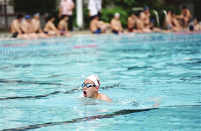 紫馬嶺室外游泳池,參加游泳考試的學(xué)生在此訓(xùn)練。本報(bào)記者 文波 攝