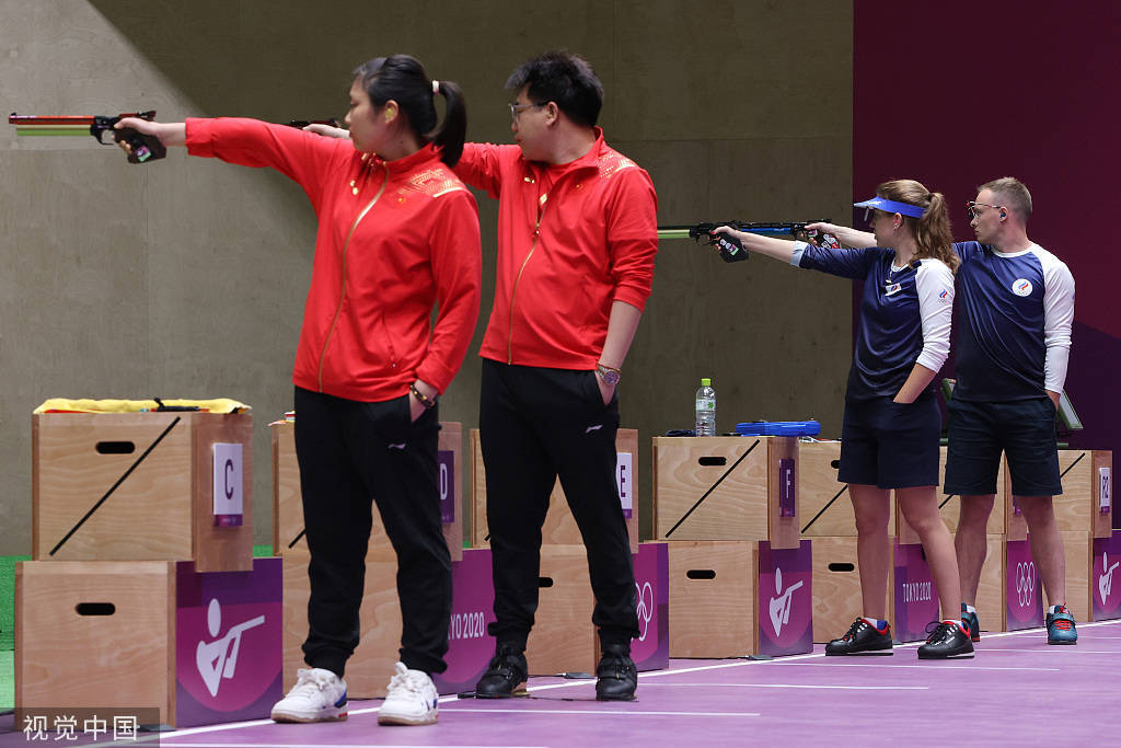 7月27日,2020年東京奧運(yùn)會混合團(tuán)體十米氣手槍展開獎牌爭奪戰(zhàn)。中國組合龐偉/姜冉馨在開局0-4落后的情況下實現(xiàn)逆轉(zhuǎn),以16-14險勝俄羅斯奧運(yùn)選手隊,為中國代表團(tuán)奪下本屆奧運(yùn)會第7金,烏克蘭擊敗塞爾維亞獲得銅牌。