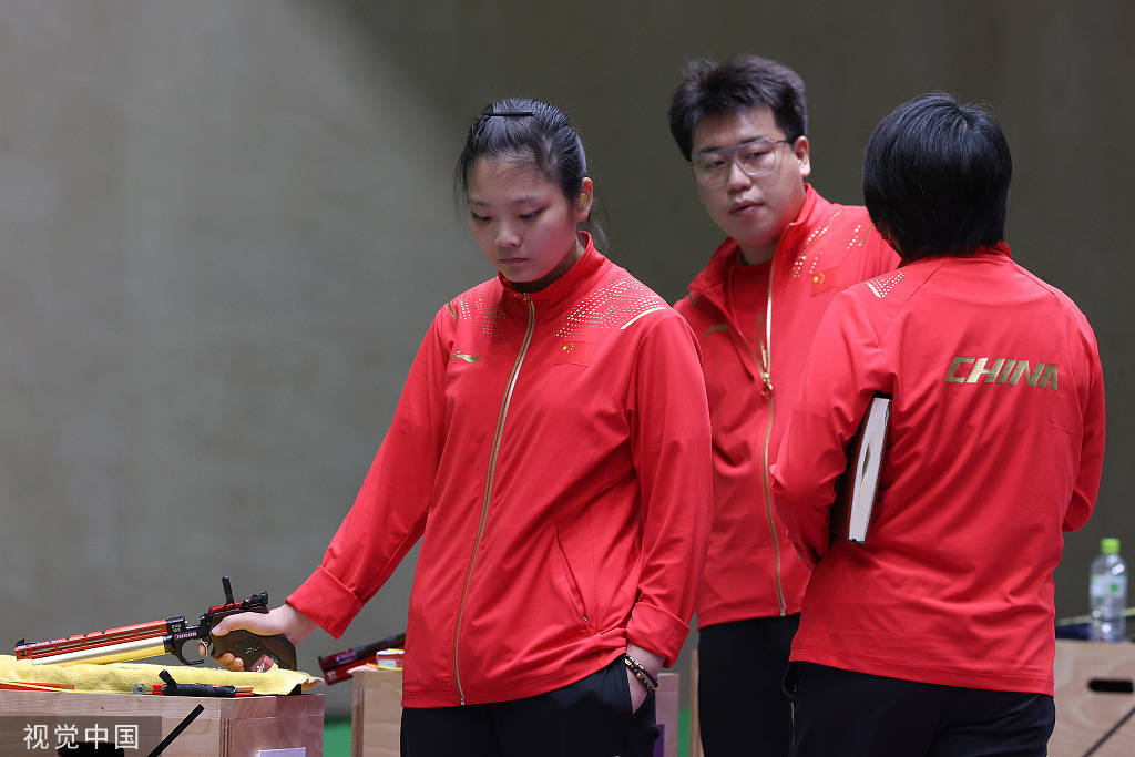 本場比賽,場面十分膠著。在比分變成14-14之后,雙方進(jìn)入到?jīng)Q勝輪次!中國組合頂住壓力,龐偉打出10.1環(huán),姜冉馨打出10.7環(huán),最后一槍中國隊以完美表現(xiàn)險勝對手奪冠!本場比賽的過程跌宕起伏,龐偉也多次屏氣凝神。