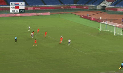 第65分鐘,米德瑪禁區(qū)前沿得球后突入禁區(qū)中路,換到左腳抽射,皮球打在防守球員腿上折射入網(wǎng),中國女足1-5荷蘭女足。