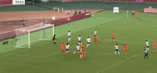 第68分鐘,中國女足扳回一城,王霜策動進攻弧頂分球禁區(qū)左側(cè),劉靖插上橫敲禁區(qū)中路,王妍雯推射打進,中國女足2-5荷蘭女足。