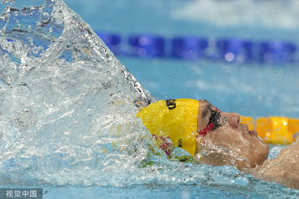 比賽開始,徐嘉余的出發(fā)反應(yīng)時是0.55秒,在小組當(dāng)中并不算出色,前半程他沖得很兇,50米成績26秒79,100米成績56秒50。150米過后徐嘉余的成績是1分27秒20掉到了第2,最終完賽成績1分57秒76,排名第三位。美國名將瑞恩-墨菲游出了1分56秒92的成績排名第一位,瑞士運動員羅曼-米留科夫游出了1分57秒45的成績排名第二位。