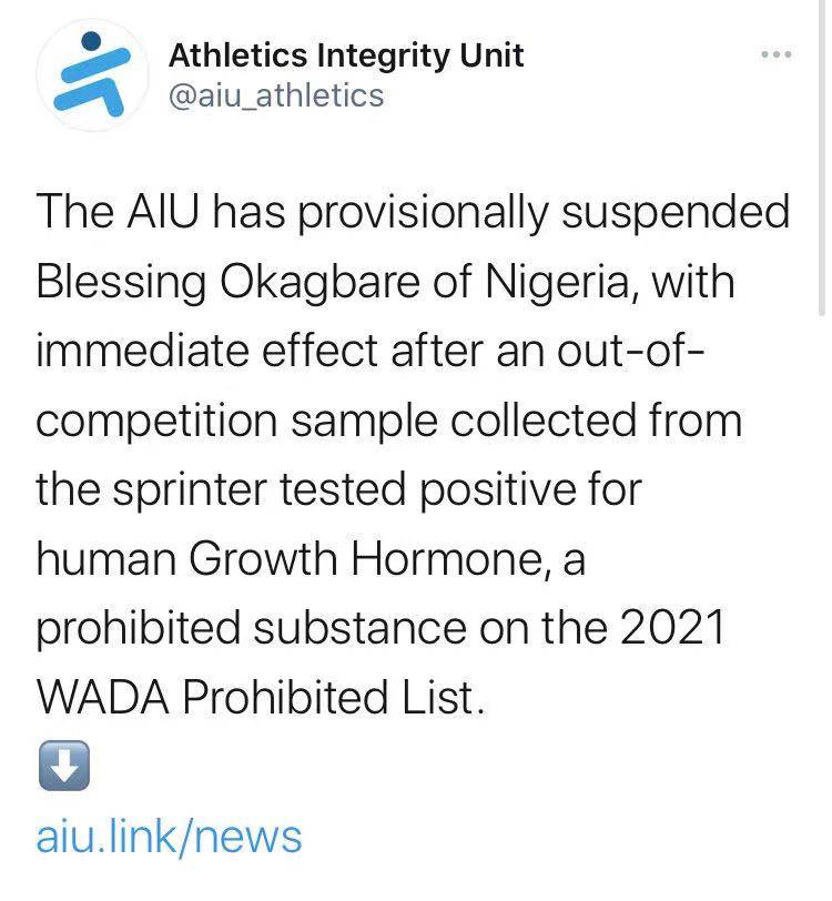 北京時(shí)間7月31日,田徑誠信機(jī)構(gòu)(AIU)宣布,尼日利亞短跑運(yùn)動(dòng)員奧卡巴雷藥檢不合格,將被立即禁賽,這是東京奧運(yùn)會(huì)開幕后首起興奮劑事件。