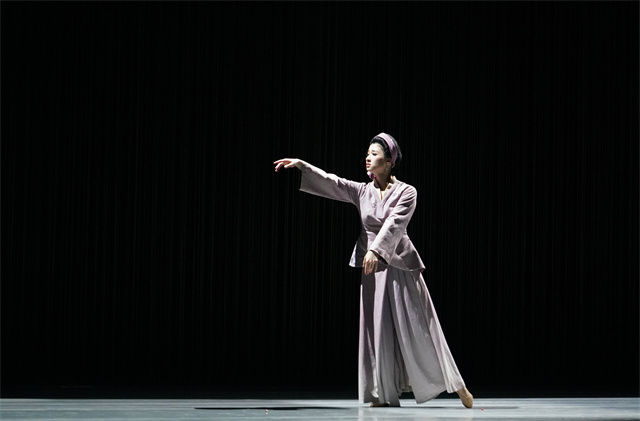 這其中還有導(dǎo)演本身的女性視角,比如說,杜甫的妻子楊氏史書上幾乎沒有什么記載,但是在這個(gè)舞劇中,導(dǎo)演給了她相當(dāng)?shù)目臻g,從新婚別離,到中年重聚,讓她去展示普通人的情感,‘杜妻’這個(gè)角色一輩子都在等待,在杜甫出去求官到棄官回鄉(xiāng)的過程中,他只回來過一次,那一次是兒子死了。所以在舞段中,杜妻流著淚哭打著質(zhì)問他,你到底在干什么?你也可以從她的身上感受到杜甫的心中有大家沒小家?!?/p>