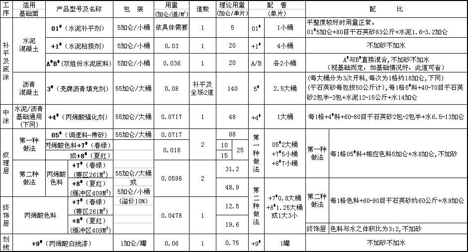 DecoTurf?(網球大師)硬地網球場670M2/片標準用量及配比