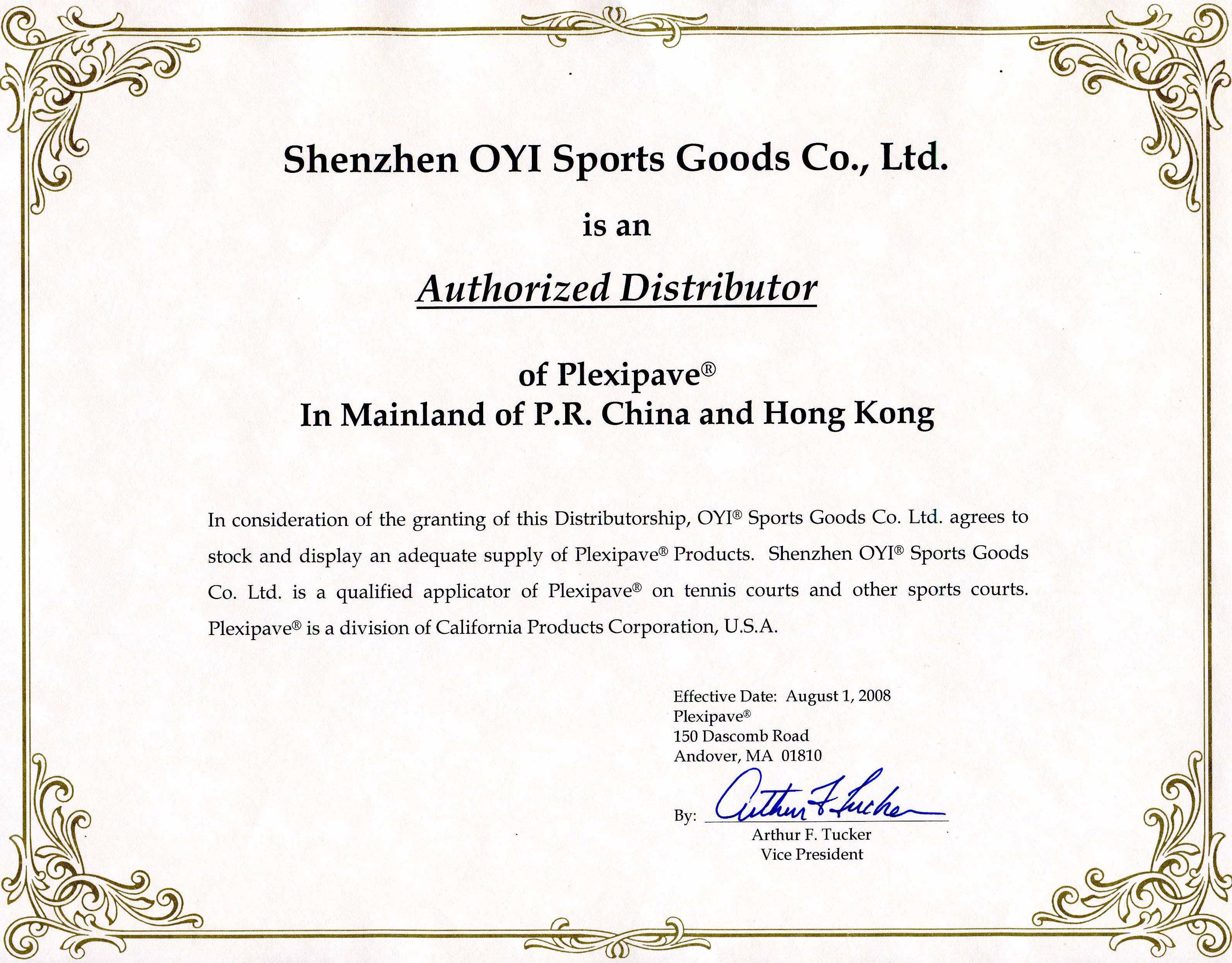 奧悅為Plexipave合格營造商與受權(quán)經(jīng)銷商證書