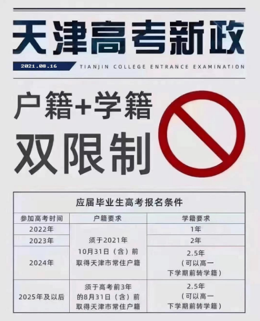 除擁有天津戶籍外,還需要滿足三年高中學(xué)籍的要求。換句話說,只有在天津讀滿三年高中的學(xué)生,才能參加高考。這一要求將在2022年實行。