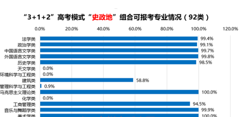 在《普通高等學(xué)校本科專業(yè)目錄(2021)》中可以看到,本科專業(yè)一共有92大類700多個具體專業(yè),史政地組合可報考41大類300多個專業(yè),占比42%。