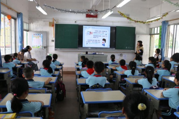 陳澤玲和梁土瑜老師設(shè)計(jì)的班會(huì)課生動(dòng)、有趣,兩位老師都利用游戲體驗(yàn)方式讓孩子們了解到自己的情緒變化的多樣和復(fù)雜。讓孩子們知道,如果有了壞情緒后,要懂得選擇正確調(diào)節(jié)情緒的方法;吳偉玲老師開展的“珍愛生命,守護(hù)生命”為主題的班會(huì)課,利用生動(dòng)的事例闡明簡單的道理,深入淺出,別開生面;姚燕老師的班會(huì)課以“學(xué)會(huì)交往”為主題,以小視頻導(dǎo)入,同學(xué)們展開熱烈的討論,課堂上輕松活躍,大家各抒己見,發(fā)表不同的看法。曾大妹、許妙旋老師課前準(zhǔn)備充分,課型新穎,師生互動(dòng)效果好,老師們向同學(xué)們展示了一節(jié)節(jié)生動(dòng)而又富有教育意義的班會(huì)課,觸動(dòng)著每一個(gè)孩子的心靈。