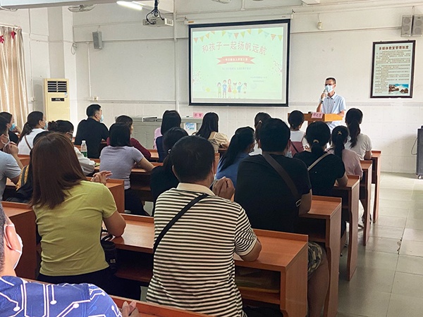 下午3點(diǎn),家長(zhǎng)們準(zhǔn)時(shí)來(lái)到學(xué)校參加培訓(xùn),培訓(xùn)的第一項(xiàng)是由永一小學(xué)鄧文忠校長(zhǎng)解讀學(xué)校的辦學(xué)理念,介紹一年級(jí)教師。然后由晏黎老師主講主題是《和孩子一起揚(yáng)帆遠(yuǎn)航》的講座。晏老師從幼小學(xué)習(xí)生活的差別、新生入學(xué)常見問(wèn)題兩方面闡述為什么要進(jìn)行新生及家長(zhǎng)培訓(xùn),接著分別從創(chuàng)建學(xué)習(xí)氛圍、養(yǎng)成良好習(xí)慣、學(xué)習(xí)人際交往、更新育兒觀念四個(gè)方面引導(dǎo)家長(zhǎng)幫助孩子盡快適應(yīng)小學(xué)生活。家長(zhǎng)們聽得很仔細(xì),并認(rèn)真做好記錄。最后,家長(zhǎng)回到各班,由班主任進(jìn)一步布置開學(xué)的工作。