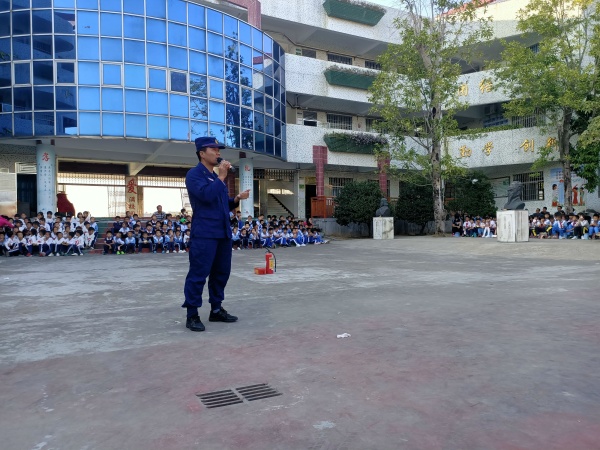 接著,坦洲鎮(zhèn)消防中隊(duì)盧警官給全校師生進(jìn)行消防安全普及專題講座。講座主要圍繞火災(zāi)案例分析、火場逃生方法普及以及滅火器的使用三個(gè)方面展開。他以通俗幽默的語言與同學(xué)們展開互動(dòng),并以生動(dòng)真實(shí)的案例告誡大家:生命不重來,安全最重要。隨后盧教官向所有同學(xué)現(xiàn)場演示消防設(shè)備的使用技巧及注意事項(xiàng),并指導(dǎo)部分老師和同學(xué)正確使用干粉滅火器。觀摩的師生通過聽取消防安全常識(shí)講解及參加現(xiàn)場滅火,消防安全意識(shí)和基本消防常識(shí)得到增強(qiáng),同時(shí)掌握了基本滅火方法,同學(xué)們不僅懂得了著火要如何自救、如何逃走、如何撥打119電話,而且還學(xué)會(huì)遇事不慌張、不害怕,沉著冷靜。最后,余校長對(duì)此次疏散演練活動(dòng)進(jìn)行了總結(jié),提出了學(xué)校安全工作的進(jìn)一步要求。