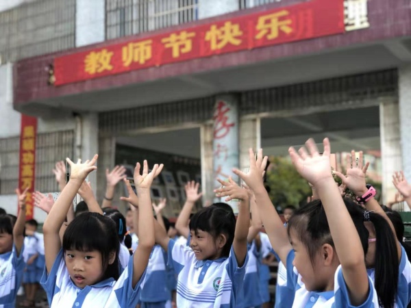 你看,一年級(jí)舞蹈《一年級(jí)》,“當(dāng)我背上書包出發(fā),不當(dāng)媽媽的小尾巴,……老師辛苦了!”當(dāng)歡快的音樂響起,一年級(jí)三個(gè)班150多名孩子用舞蹈向老師道聲:“老師節(jié)日快樂!”