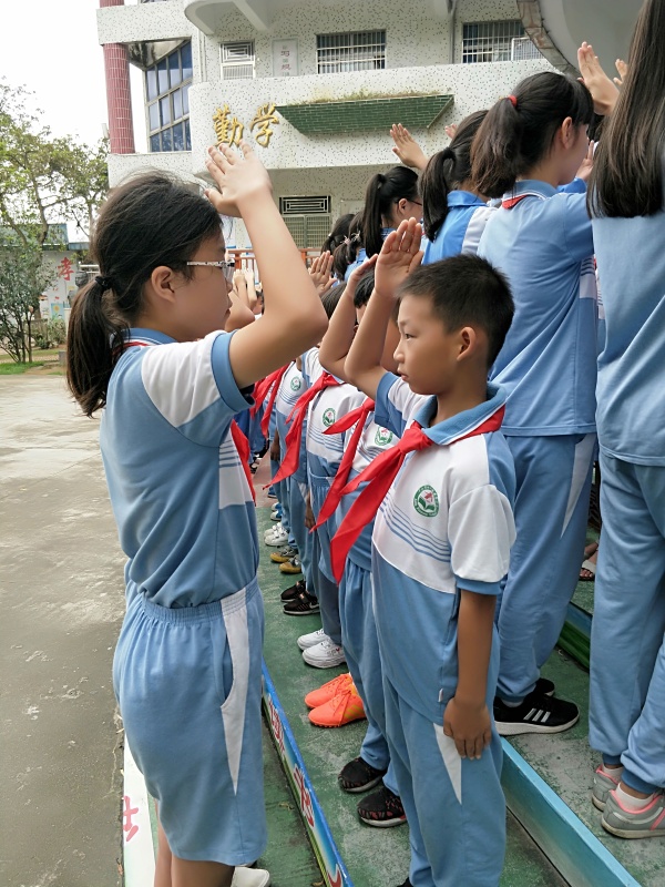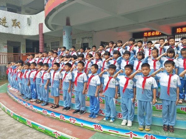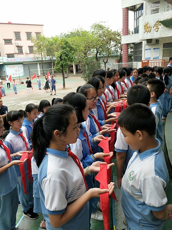 安阜小學(xué)少先隊(duì)開(kāi)展“喜迎六一 祝福祖國(guó)”向新中國(guó)70周年華誕獻(xiàn)禮活動(dòng),5月30日下午,坦洲鎮(zhèn)安阜小學(xué)大隊(duì)部在操場(chǎng)舉行“扣好人生第一??圩印?新生入隊(duì)儀式。115名一年級(jí)的學(xué)生,經(jīng)過(guò)兩周的隊(duì)前學(xué)習(xí),今天欣喜地佩戴上紅領(lǐng)巾,光榮地加入中國(guó)少年先鋒隊(duì)組織。