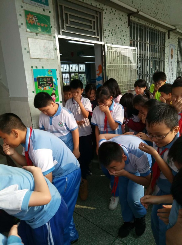 一陣急促的警報聲拉開了“師生應急疏散演練”活動的帷幕。聽到警報聲,各位老師到達指定崗位,其他任課教師立即維護秩序,帶領學生手捂著口鼻,彎著腰,沿著學校指定樓梯口快速前進,有序地撤離到學校操場的安全地帶,隨即各任課教師清點人數(shù),并層層向上匯報。集結完畢后,德育主任對演練情況做了總結,提出在演練時的優(yōu)缺點。