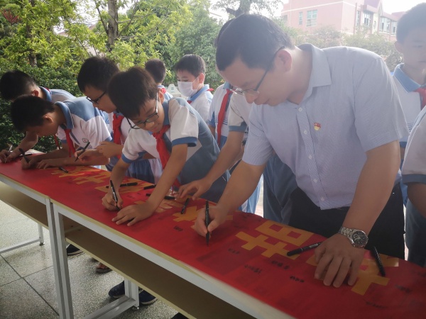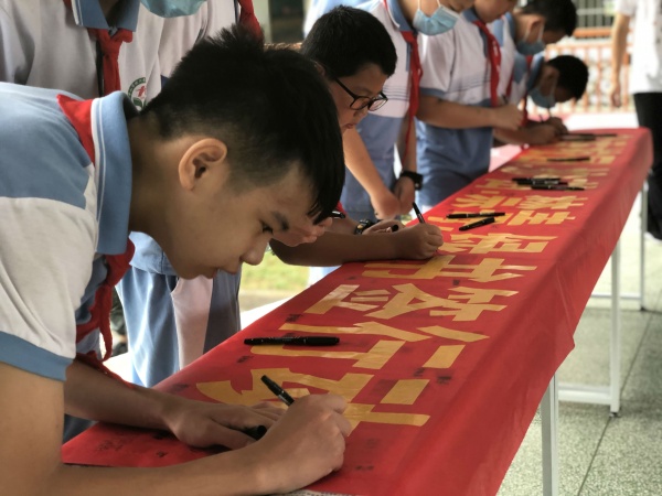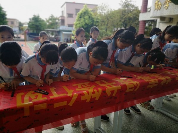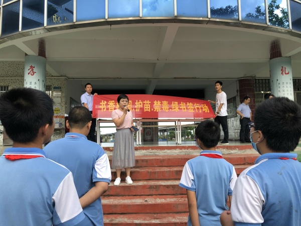 本次活動在莊嚴的升旗儀式下拉開序幕,學(xué)校德育主任傅嘉賢就活動精神展開講話,教育全體師生掃黃打非從自身做起,組織學(xué)生開展了一次護苗綠書簽簽名承諾活動。在學(xué)校德育處的組織下,學(xué)校余壁峰校長帶頭簽名,各班同學(xué)分年級進行,鄭重地在“書香校園.護苗.禁毒.綠書簽行動”橫幅上簽上自己的名字。當(dāng)看到懸掛在學(xué)校門口有自己簽名的的橫幅時,學(xué)生們紛紛表態(tài):“我要自覺抵制不良的網(wǎng)絡(luò)信息,做到健康上網(wǎng),同時要多讀正版書籍,為營造書香校園而努力!”