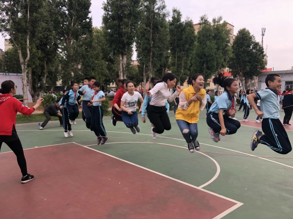 在同學(xué)們的熱切期盼中,精彩而富有趣味的跳繩比賽開(kāi)始了。同學(xué)們精神抖擻,身體有節(jié)奏的飛速律動(dòng),新籃球場(chǎng)上輕快的身影目不暇接,周?chē)瑢W(xué)們的加油聲歡呼聲不絕于耳,校園成了歡樂(lè)的海洋。上午還開(kāi)展了踢毽子比賽、一至四年級(jí)迎面接力賽以及一、二年級(jí)拔河比賽。