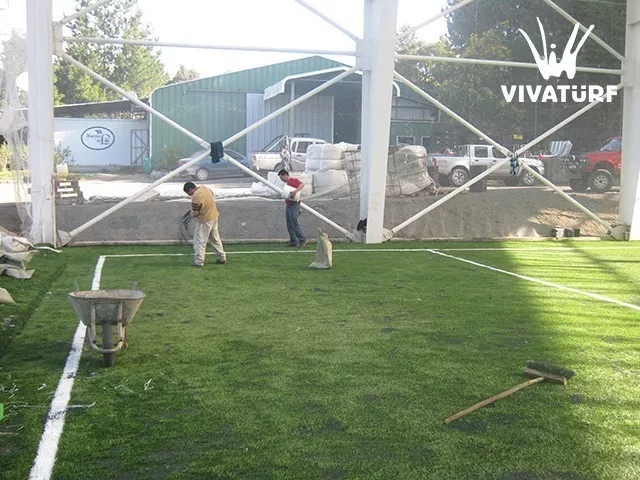 足球場人造草坪施工需要確?;A(chǔ)平整度達(dá)到95%以上及水泥石粉基質(zhì)達(dá)到10%,其次,鋪設(shè)人造草坪,在鋪設(shè)過程中發(fā)現(xiàn)地面不平整、基質(zhì)中摻雜雜質(zhì),則需要及時修復(fù)并清掃現(xiàn)場。