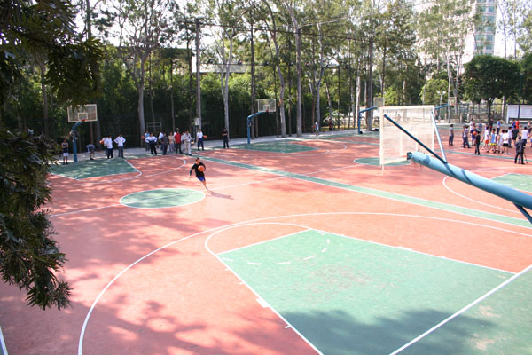 3、塑膠面層(透氣式/混合式)籃球場(chǎng):由EPDM橡膠粒子攤鋪而成的塑膠面層,腳感軟硬適度,摩擦力較強(qiáng),對(duì)基礎(chǔ)要求較低,造價(jià)較高,球反彈速度正常,摔倒時(shí)不易受傷, 適用于各種室內(nèi)、室外籃球場(chǎng)。