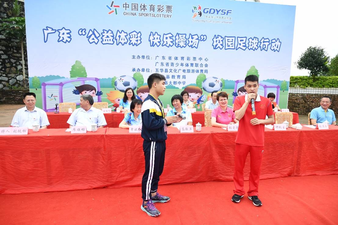 廣東“公益體彩 快樂操場(chǎng)”此次帶來不止是一套裝備、一場(chǎng)比賽,在梅州市全面推進(jìn)全國(guó)青少年足球改革試驗(yàn)區(qū)建設(shè)的時(shí)間節(jié)點(diǎn)上,對(duì)大都中學(xué)足球發(fā)展有著更深遠(yuǎn)的意義。據(jù)介紹,在省體育局的部署下,2016年廣東“快樂操場(chǎng)+”主題活動(dòng)突出體育支教,在援建山區(qū)學(xué)校“快樂操場(chǎng)”15所的同時(shí),組織25名優(yōu)秀運(yùn)動(dòng)員深入校園支教,有效解決山區(qū)學(xué)校師資不足與器材不足的問題,深受山區(qū)孩子們的歡迎;2017年廣東“快樂操場(chǎng)+”主題活動(dòng)在體育支教的基礎(chǔ)上增加“冠軍課堂”,在為25所山區(qū)中小學(xué)資助體育設(shè)施和運(yùn)動(dòng)器材的同時(shí),由廣東奧運(yùn)冠軍領(lǐng)銜,組織開展25場(chǎng)冠軍課堂活動(dòng),傳播體育文化,弘揚(yáng)愛國(guó)主義精神。2018年“公益體彩 快樂操場(chǎng)”主要圍繞校園足球展開。