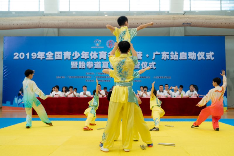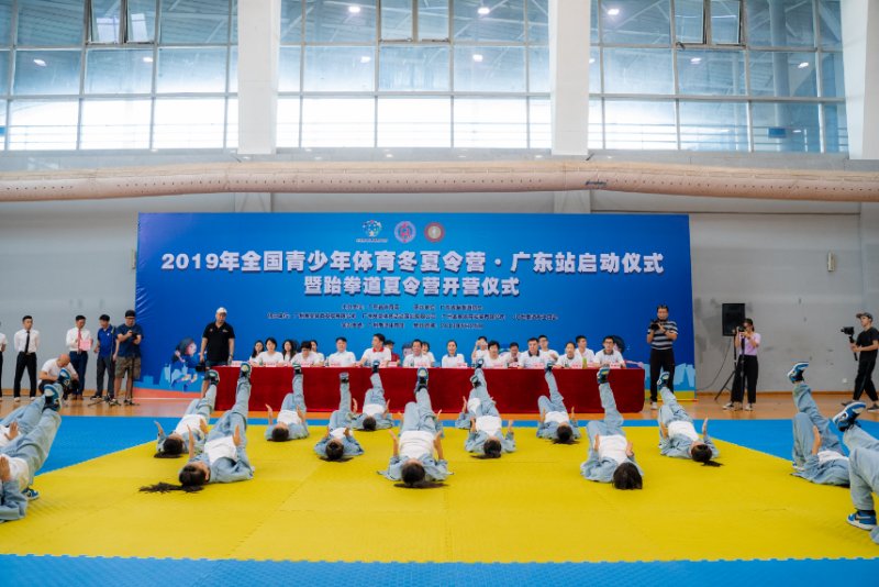 啟動儀式上,省體操技巧協(xié)會、省跆拳道協(xié)會和省青少年競技體育學校分別進行了精彩紛呈的體育表演。省跆拳道協(xié)會介紹了今年廣東站跆拳道夏令營的開展落實情況。隨后,省體育局等領(lǐng)導(dǎo)嘉賓為全省各個分營點代表授旗。
